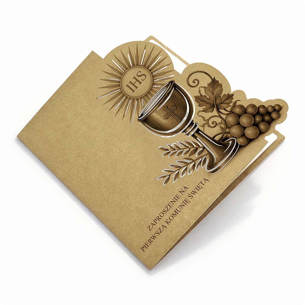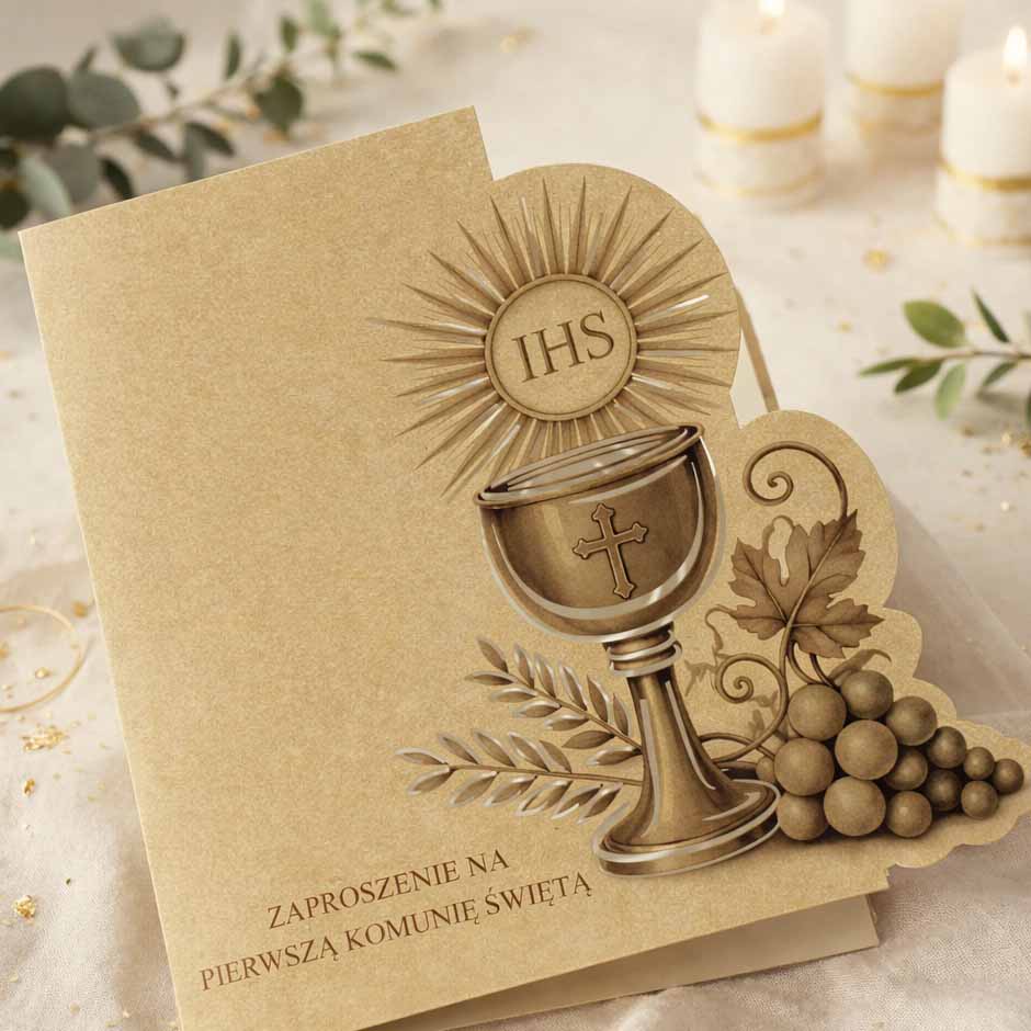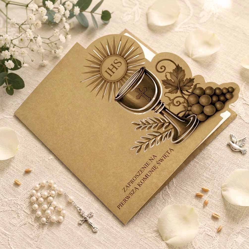 Wyjątkowe zaproszenie komunijne, które łączy ponadczasową elegancję z naturalnym pięknem ekologicznych materiałów. Projekt stworzony z myślą o uroczystości o szczególnym znaczeniu - subtelny, harmonijny i dopracowany w każdym detalu.